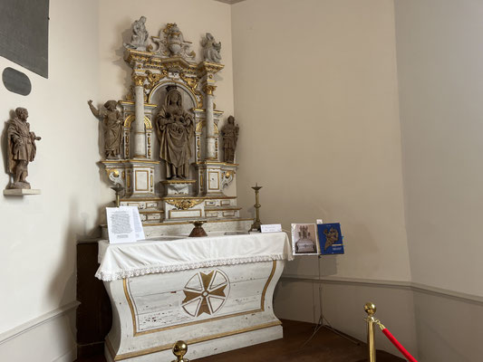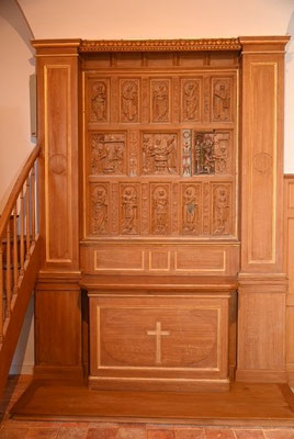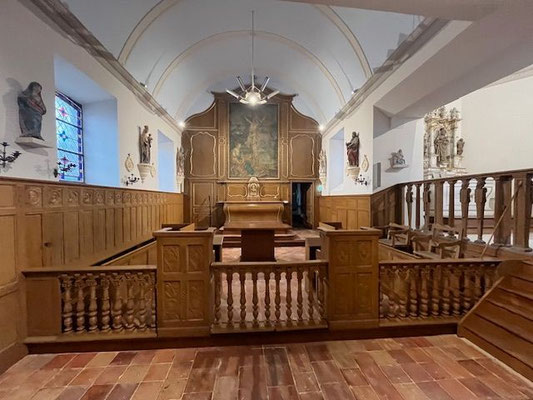 Lambris, Croix, Fonds Baptismaux, Bénitiers… et bien sûr les retables qui font